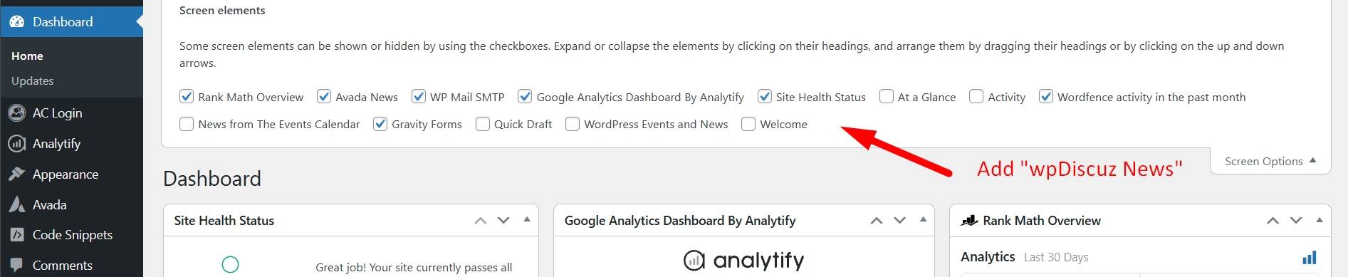 3. Please move "What's New" section to above the "Credits" section. See below image. This will allow a cleaner UI for web developers. Preferred: Delete "What's New" from the wpDiscuz dashboard and move it to the WordPress' main dashboard as an optional screen element (same as most other plugins do). Call it "wpDiscuz News". See below image.