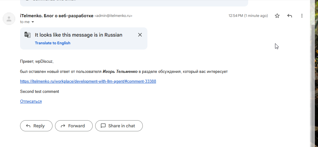 Meanwhile, I see emails with subscription confirmation requests in the SMTP logs, but I don't see any emails with comment notifications.