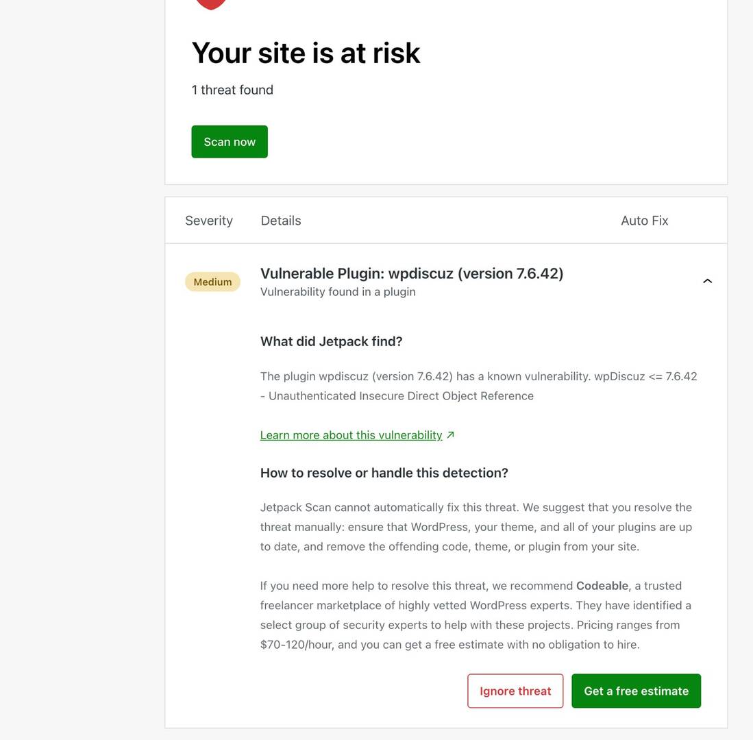 2. Wordfence Central: https://www.wordfence.com/threat-intel/vulnerabilities/wordpress-plugins/wpdiscuz/wpdiscuz-7642-unauthenticated-insecure-direct-object-reference