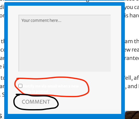 Hello, how do I fix the problem of white text on a light background? The color and style options did not affect these particular areas. Maybe I missed it, but I tried each one with purple. The comment box button has a white border, black circle. Red circle is asking to check the box. That little box has a dark border, but the text is white. Thank you for any suggestions.