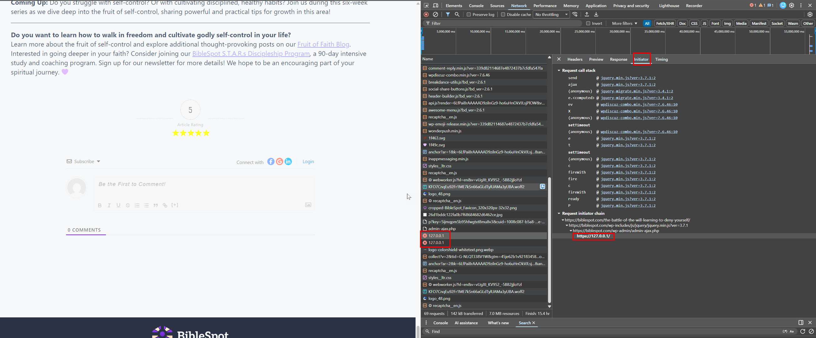 Rochelle — that pins it to wpDiscuz’s JS bundle, so the 127.0.0.1 URL is being fed into wpDiscuz as its AJAX/API endpoint (it doesn’t originate from jQuery).