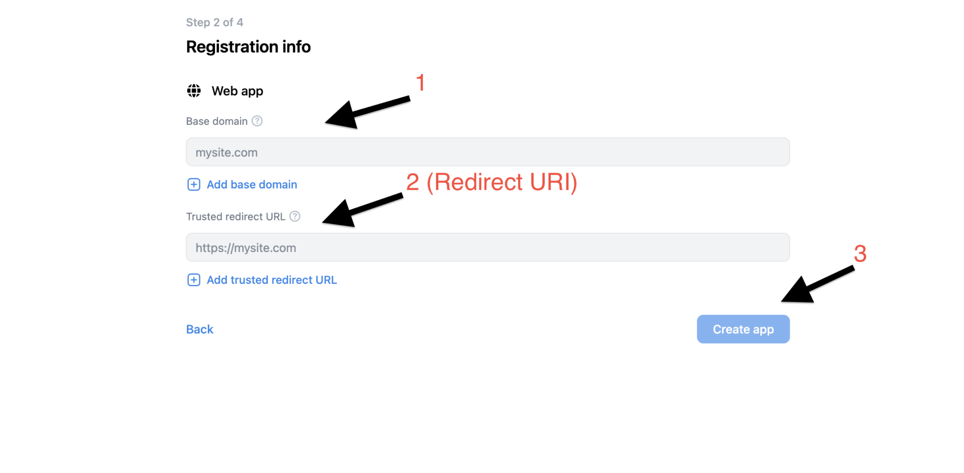 7.  In this page, you should fill the Base domain and Trusted redirect URL.
