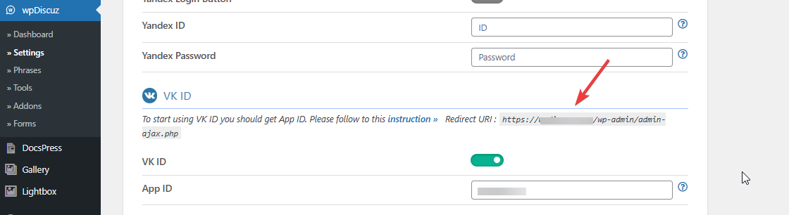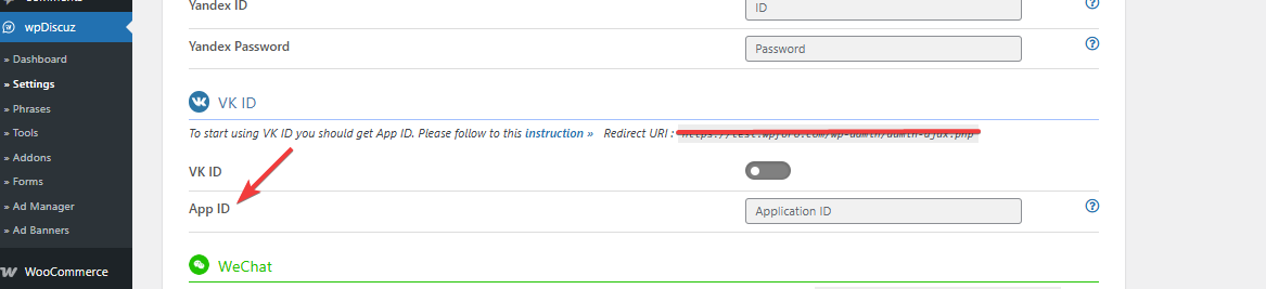 10.  Fill the according wpDiscuz option in Dashboard > wpDiscuz > Settings > Social Login and Share admin page (VK section):
